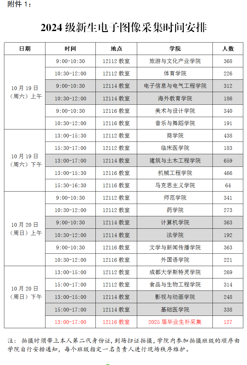 各学院学生电子图像采集具体时间安排请查看附件1