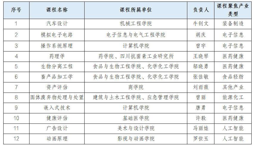根据《四川省教育厅关于开展四川省第二批普通高等学校高阶课程遴选和建设工作的通知》要求,学校组织了相关申报遴选工作。经个人申报、学院推荐、专家评审,拟推荐结果如下,现予以公示,公示期为2025年4月21日-2025年4月23日。公示期间,任何单位和个人对结果有异议的,请在公示期内以书面形式(署真实姓名)向教务处反映。联系人:李老师,联系电话:028-84616016。