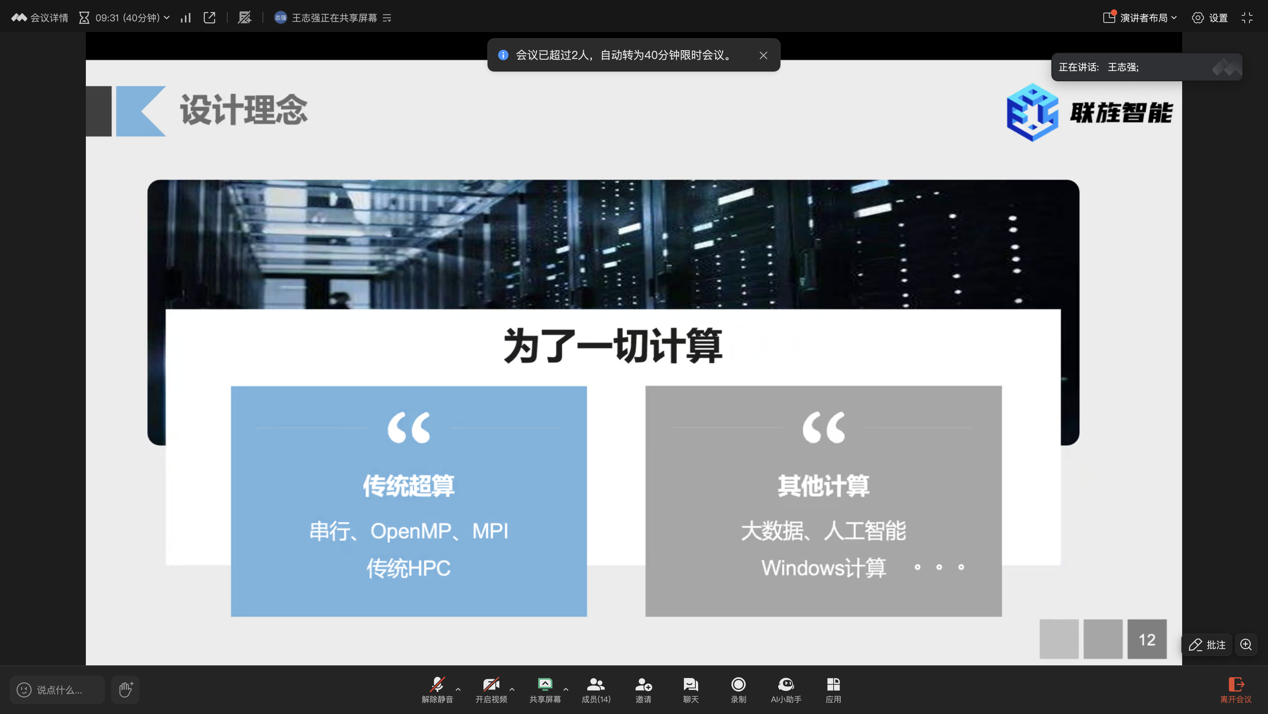 联旋智能技术团队随后对EaaS高性能计算云平台进行了演示与讲解,重点展示了GPU池化与队列调度、班级一键开课、容器与镜像管理、数据空间与权限体系、用量与费用可视化等能力,并结合“课程并发实训、论文复现实验、导师组联合训练、推理服务在线化”等典型场景进行了操作演示。与会教师普遍认为,该平台能够在教学组织、科研协作与平台治理三方面提供可落地的工具链支撑。