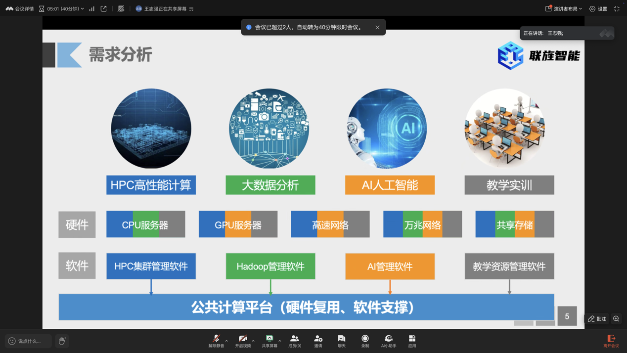 牵头、联合校内信息化部门与联旋智能共同举办的“GPU资源与调度平台(EaaS)线上交流会”顺利举行。来自多学院的课程负责人、科研团队代表与算力管理人员在线参会,围绕“如何更高效、更可控地支撑AI教学与科研”展开了系统交流。学院首先介绍了我校AI课程与科研项目对GPU资源的快速增长趋势,以及当前在统一调度、透明计费、环境可复现等方面的现实痛点与改进方向,为后续讨论奠定了背景。