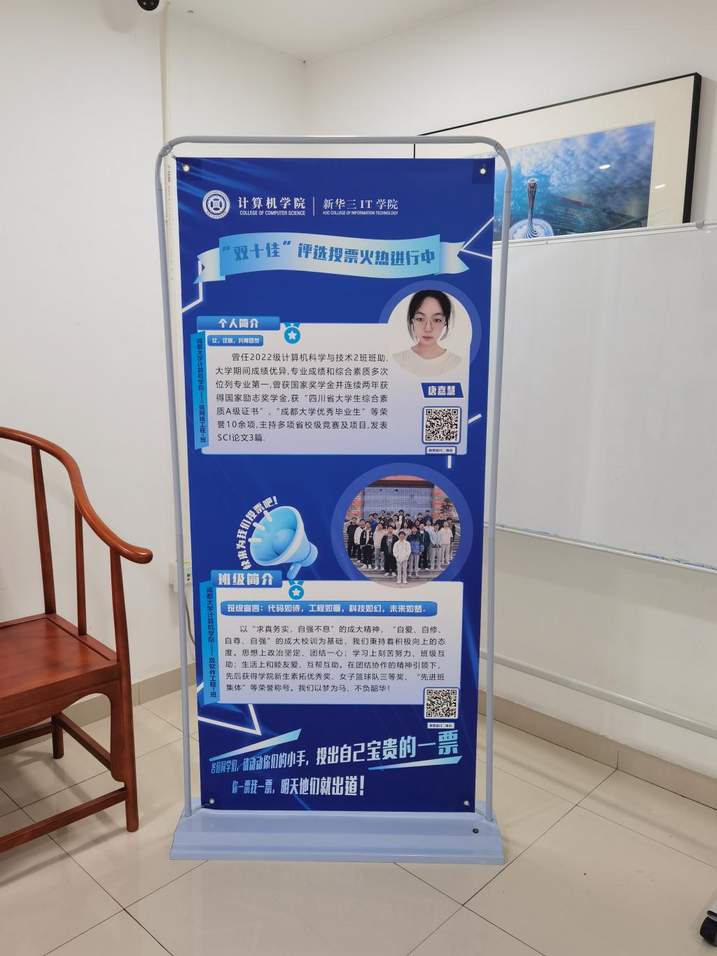 十佳大学生候选人唐嘉慧和十佳班集体候选班级21软件工程1班部分同学在新空间开展双十佳线下风采展示。