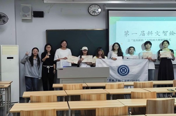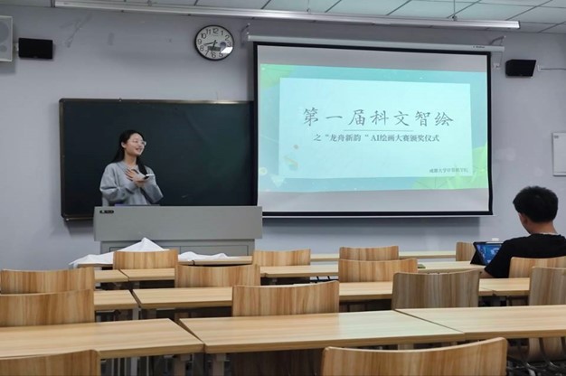 以端午为契机,举办第一届“科文智绘·龙舟新韵——AI绘画大赛”。经过两周的投稿与评选, 5月30日晚,“科文智绘·龙舟新韵——AI绘画大赛”暨颁奖仪式在13教13220成功举办,由科文部各干事和获奖选手到场。由科文部部长肖雅馨担当主持并为获奖选手颁奖。