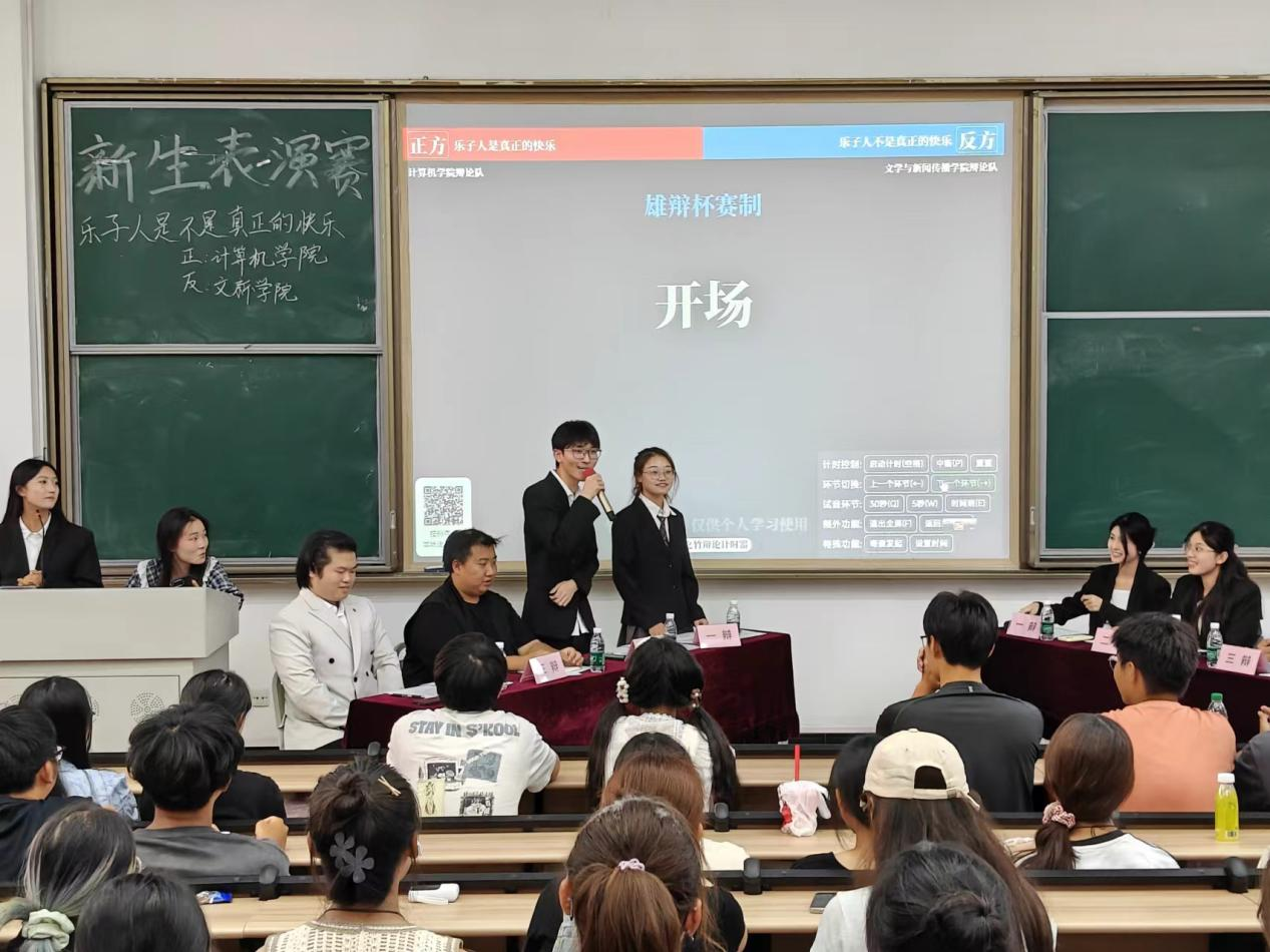 携手文新学院在7201教室成功上演了一场别开生面的新生表演赛,辩题引人入胜——“乐子人是不是真正的快乐”。此次活动不仅汇聚了做爱视频