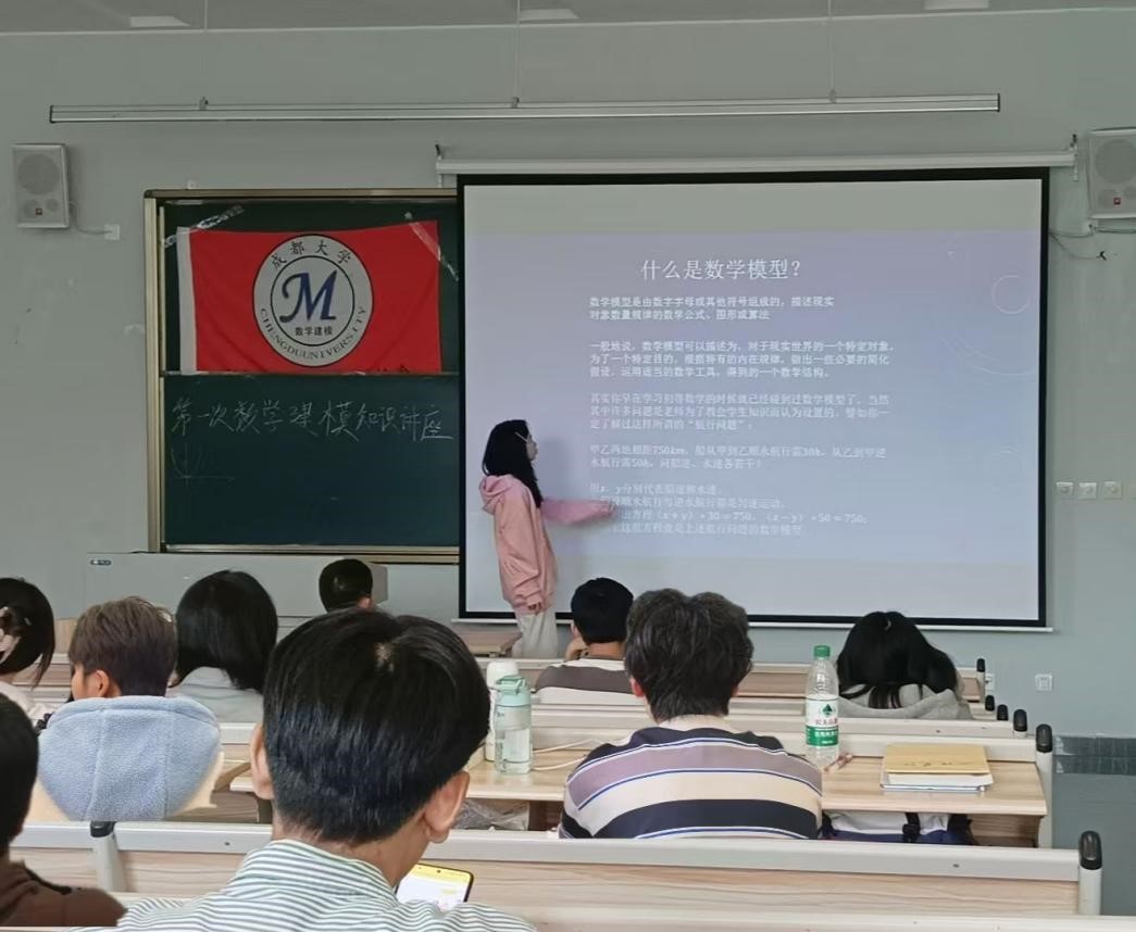 在第一场讲座中,协会会长罗梦妮同学为大家全面介绍了建模方面的知识,为大家分析了建模的相关考点,同时也科普了一些比赛的基本信息、比赛的资料从哪里寻找,并带领同学们共同思考讨论了相关例题,给新接触数学建模的同学们带来了极强的体验感和收获感。