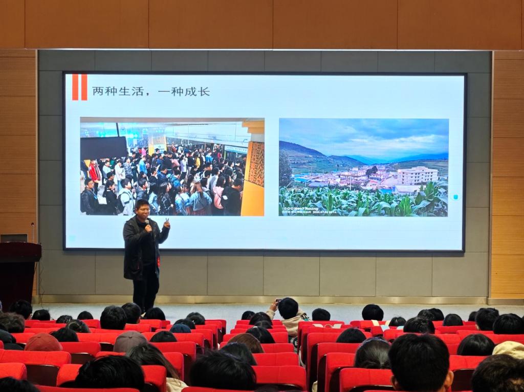 分享交流活动在《西部计划宣传片》的激昂旋律中拉开帷幕。来自计算机工程学院,现服务于四川省凉山州金阳县小银木乡人民政府的蒋贵平,以《我与“小银木”的故事》为题讲述了自己从城市焦虑到乡村沉淀的转变,通过基层工作日常的介绍娓娓道来,分享了自己的成长与蜕变。他说从“怕犯错”到“敢担当”,从“追赶时间”到“理解时间”,从“数字焦虑”到“温度认同”,基层服务让他真正懂了“奋斗的青春最闪光”的含义。