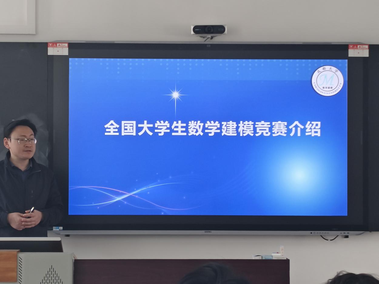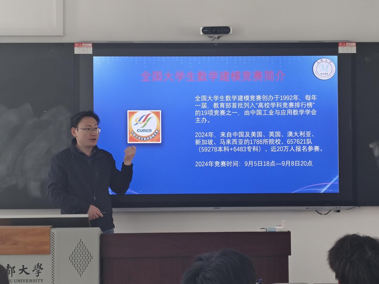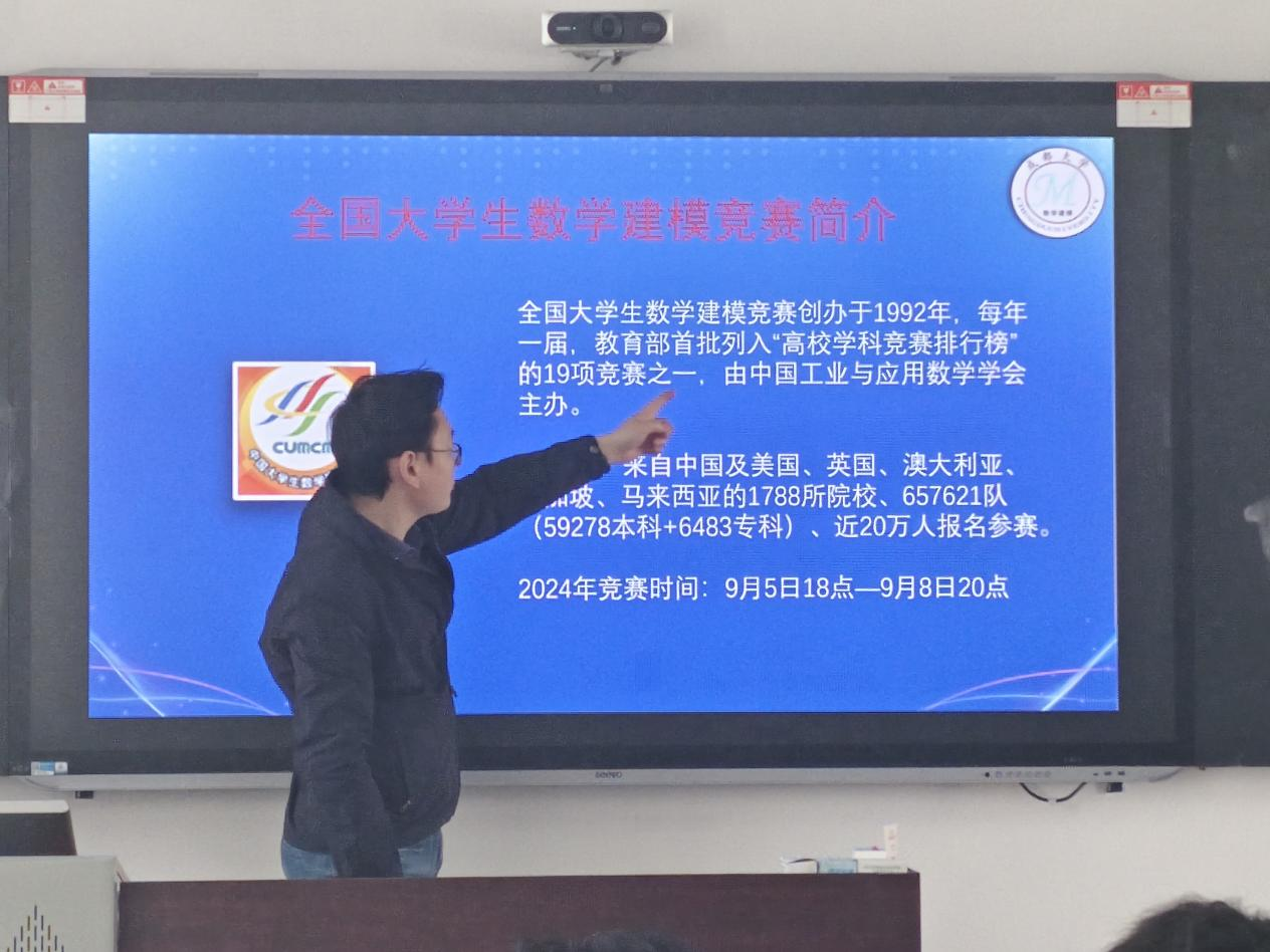 在10410举办2025数学建模比赛宣讲动员大会。会议由施达老师主持,学生们积极参与。