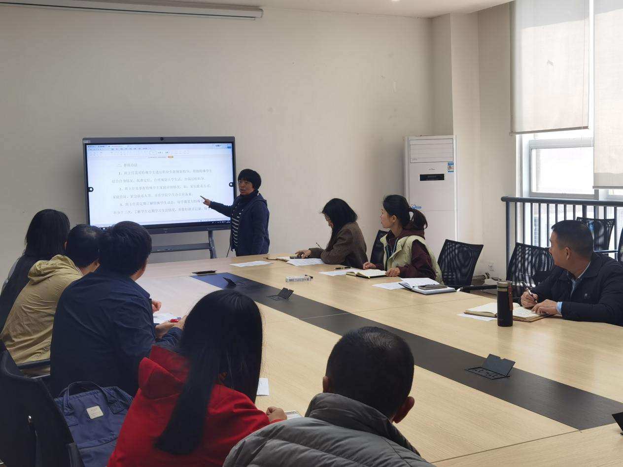 特殊学生群体的帮扶工作。孟源强调了以下几点:一是思政工作:强化素质学分认定与学风建设,学院将每周通报缺勤情况,并要求班主任做好一对一学业指导。二是安全工作:多措并举保障学生安全。清明节假期将至,要求班主任提醒学生注意祭祖扫墓的安全,尤其是防火防灾和往返校园的交通安全。同时,针对近期发生的网络诈骗事件,加强防诈宣传。三是毕业生工作:就业与考研指导并重;学院安排了就业感知活动和双选会,此外,对于有调剂需求的学生,班主任需及时沟通并提供指导。四是团学工作:推动素质拓展与学科竞赛;提醒班主任关注西部计划报名、毕业生团组织关系转接以及素质拓展类学分认定等事项。
