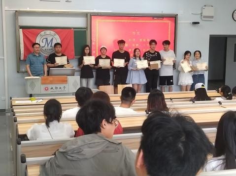 5月22日,在综合楼12130教室,为获奖同学颁发奖状及奖品,有幸邀请到指导老师施达老师主持颁奖典礼。老师鼓励、祝贺同学们的同时,为同学们讲解暑假集训期间的注意事项,为同学们做好心理建设,提醒同学们应更加努力,争取在国赛的舞台大放光彩。