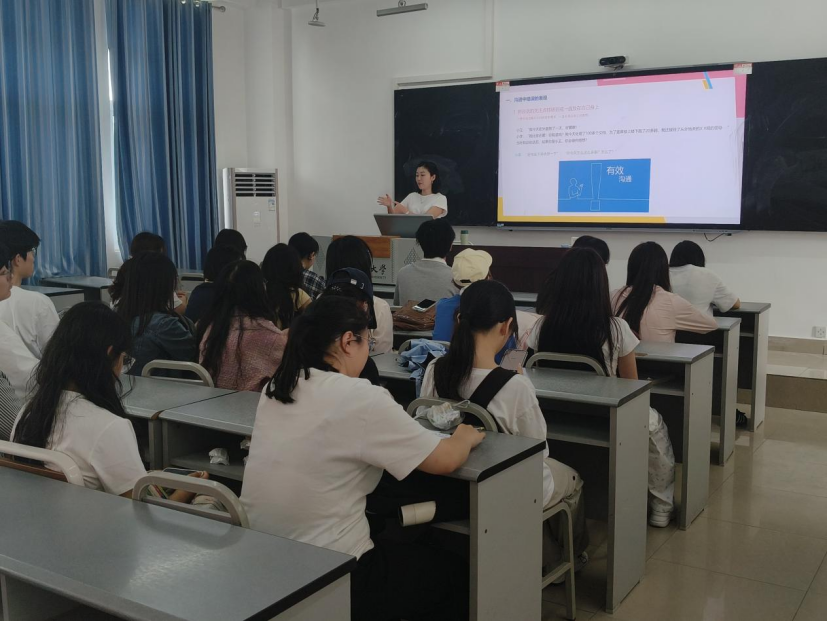 随后,曾倩老师围绕“沟通技巧”展开了精彩的讲座。她详细讲解了有效沟通的三大要素,即倾听、表达和反馈,让学员们明白在沟通中这三个环节的重要性。接着,老师分析了团队协作中常见的沟通障碍,并分享了相应的化解方法。此外,老师还结合职场与校园场景的实际沟通案例进行了深入剖析,使学员们对沟通技巧有了更直观的认识。