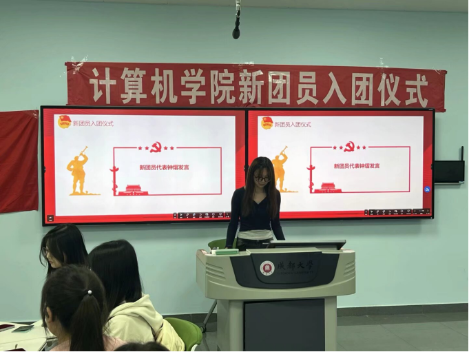 新团员代表钟熠满怀激情地走上发言席,分享了自己加入共青团的激动心情和对未来的展望。她表示,将以更高的标准要求自己,努力学习科学文化知识,积极参与社会实践,传承和弘扬共青团的优良传统,在新时代展现新作为。