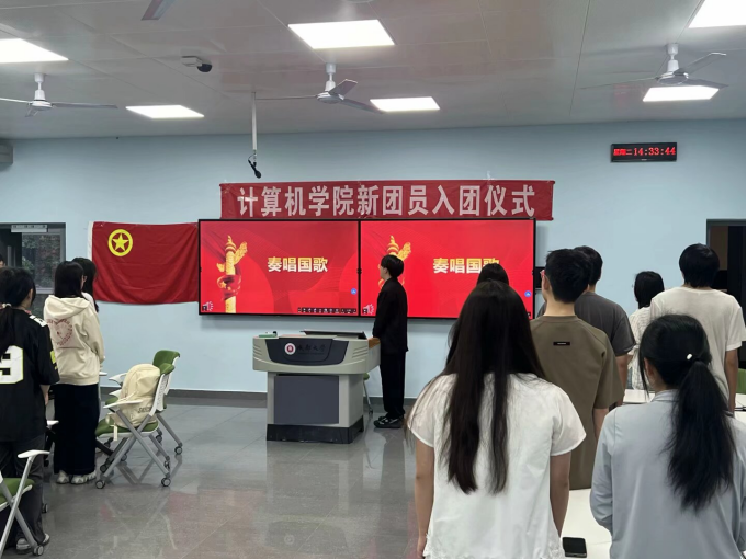 仪式伊始,在董凯文的宣布下,全体人员起立,奏唱中华人民共和国国歌。激昂的国歌声响彻会场,点燃了在场每一位青年心中的爱国热情,也正式拉开了入团仪式的序幕。
