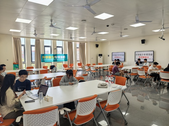 联合新东方考研,在综合楼 13417 教室为 40 余名 2023 级意向考研同学开展一对一考研规划指导活动,每位同学获约半小时专属答疑。