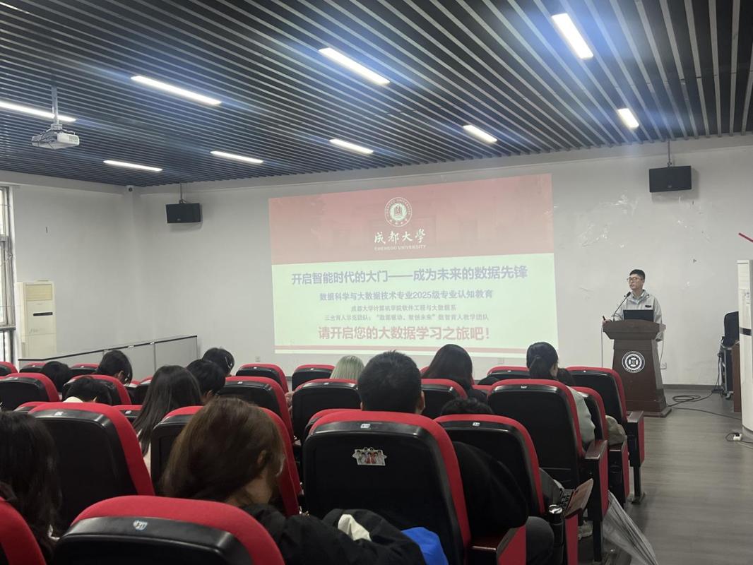 余小东老师则以“开启智能时代的大门——成为未来的数据先锋”为主题对数据科学与大数据技术专业新生开展了专业认知教育。他鼓励同学们筑牢数学、编程等根基,学好用数据工具,培养数据挖掘能力,成长为复合型数据人才,在多领域发光。