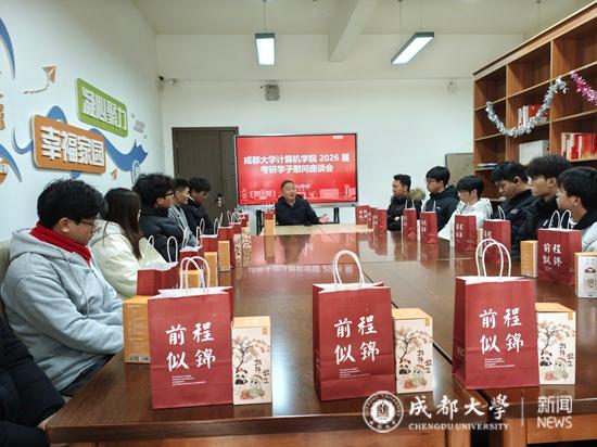 最后,孟源送上 “顺利上岸” 的祝福,代表校院为学子发放慰问品。学子们表示将把关怀转化为备考动力,沉着应考。此次座谈会有效缓解了备考压力、坚定了学子信心,学院也将持续做好考研服务保障工作。