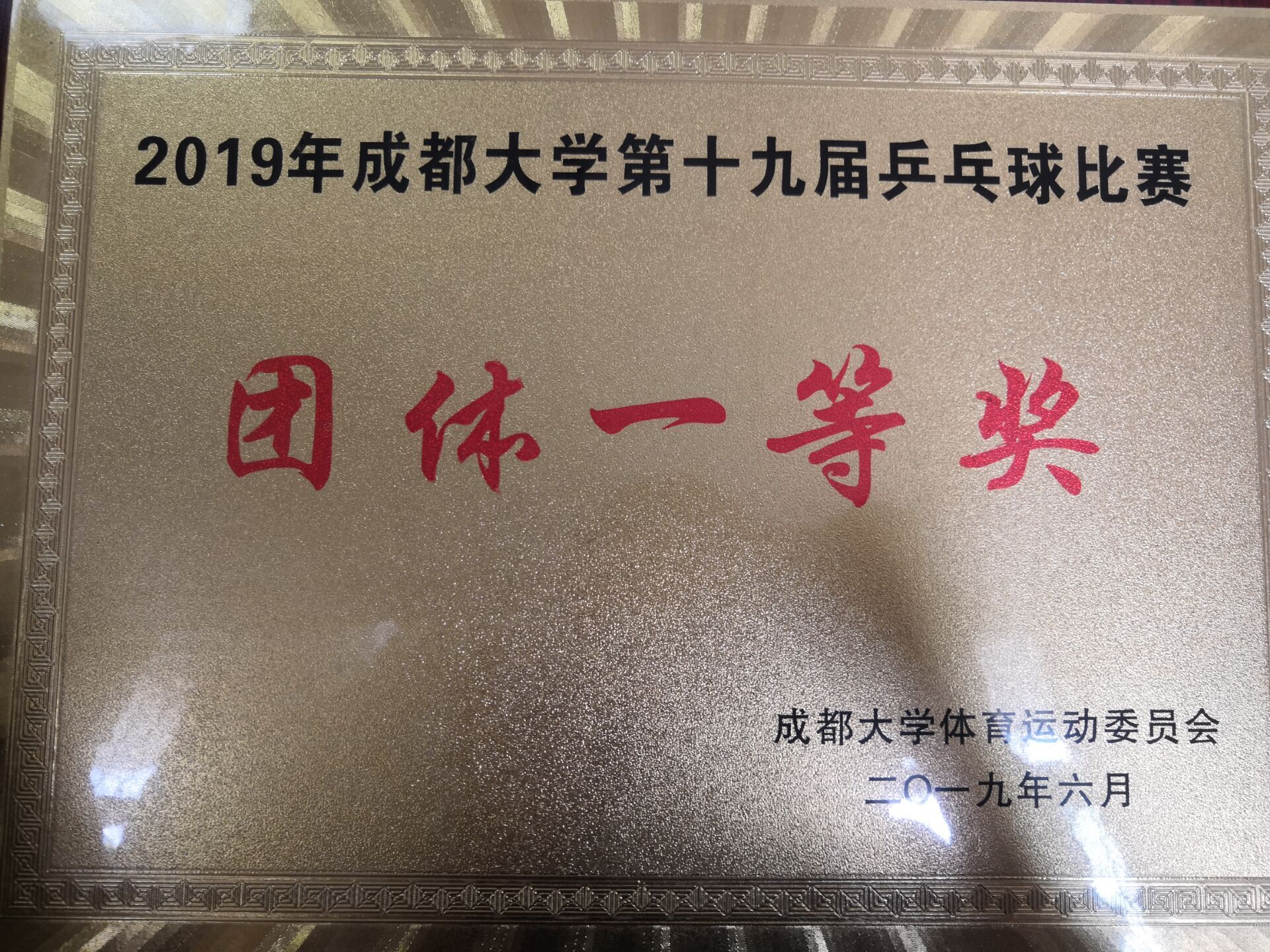 乒乓球比赛团体赛学院冠军。