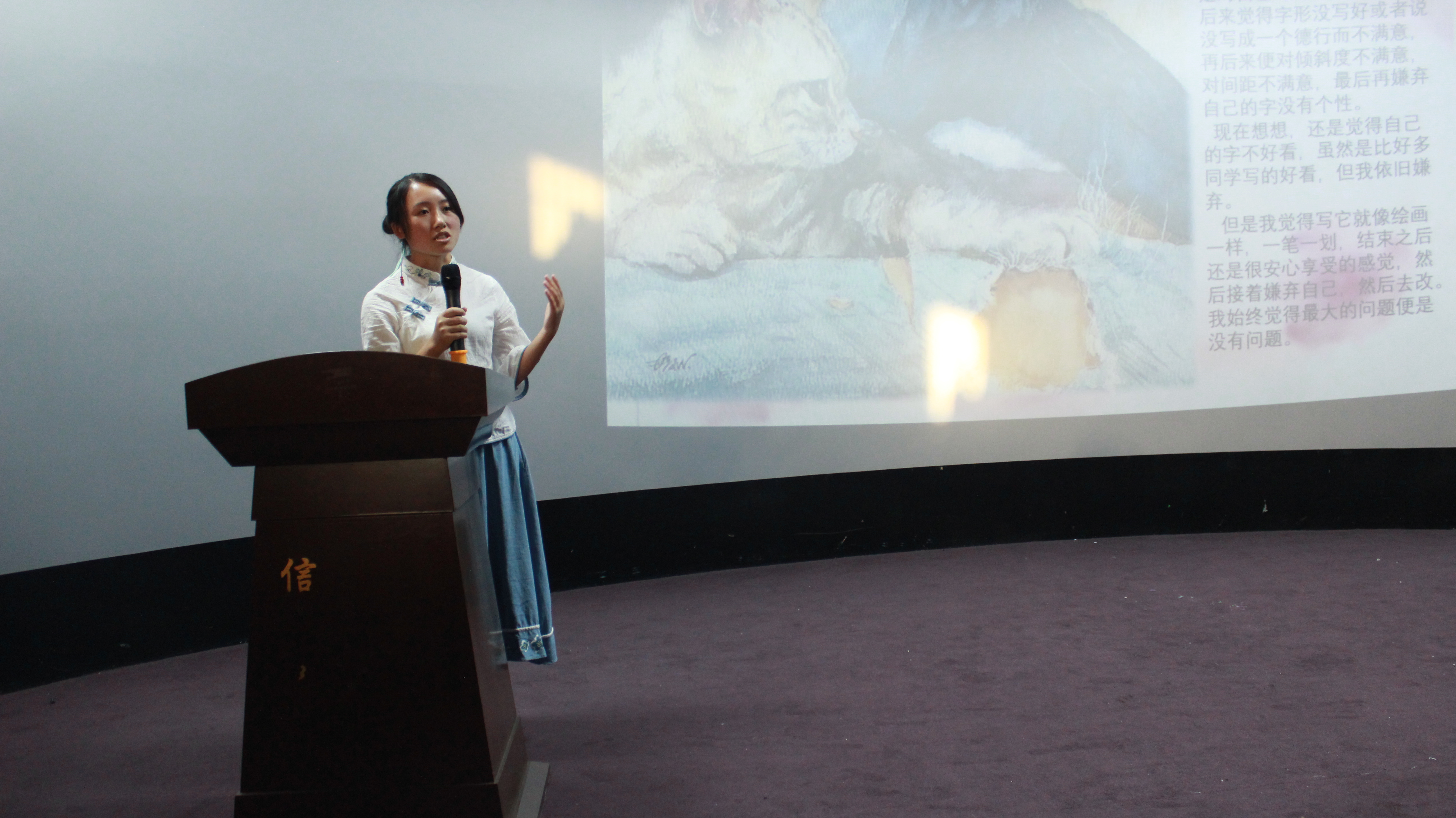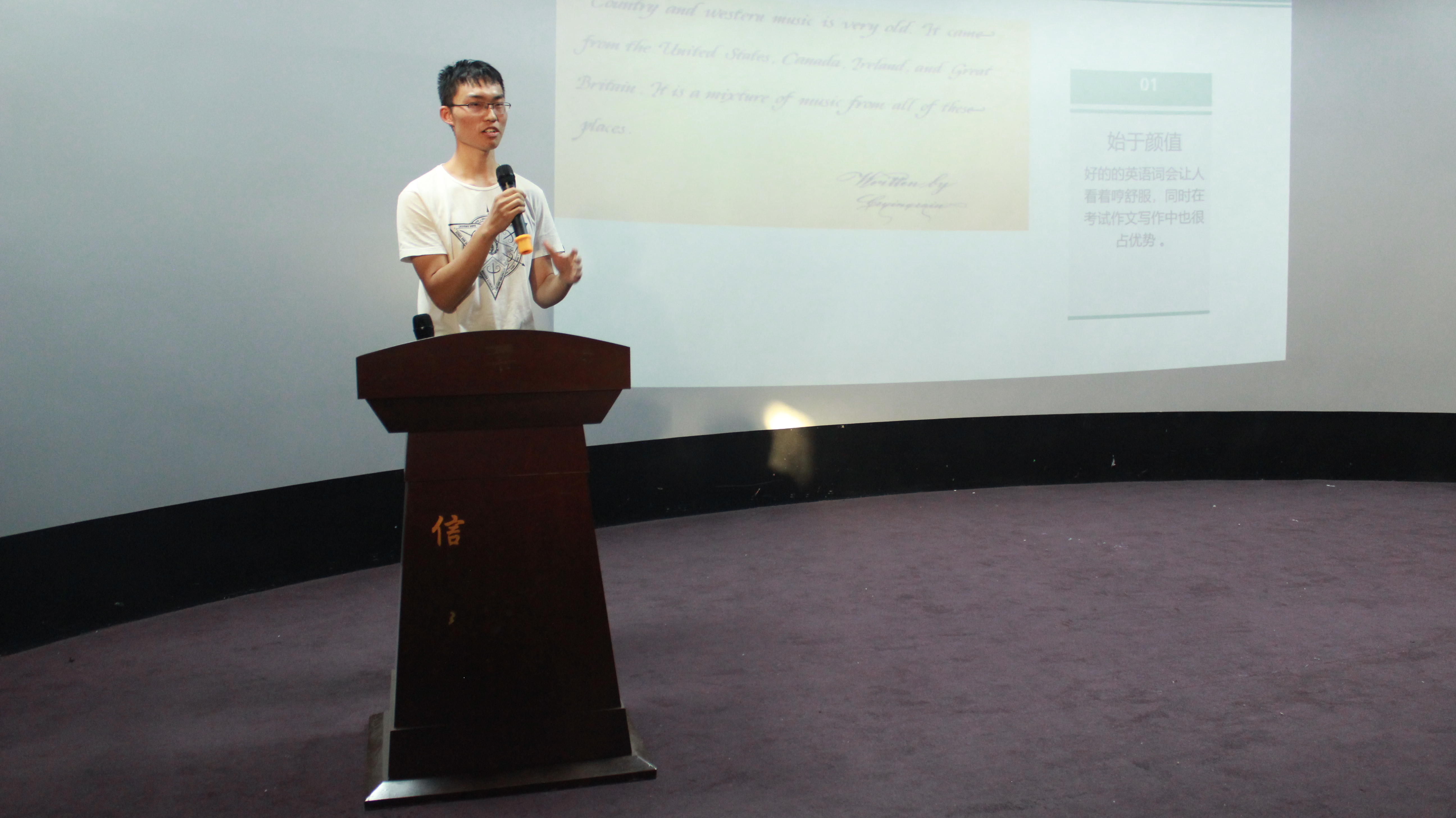第四届英语书法大赛决赛于7点整在10501演播厅如期举行。参加大赛的嘉宾有信工学院分团委学生会主席赵爽冯言、分团委副书记冯凡,评委由各学院学习部部长担任。