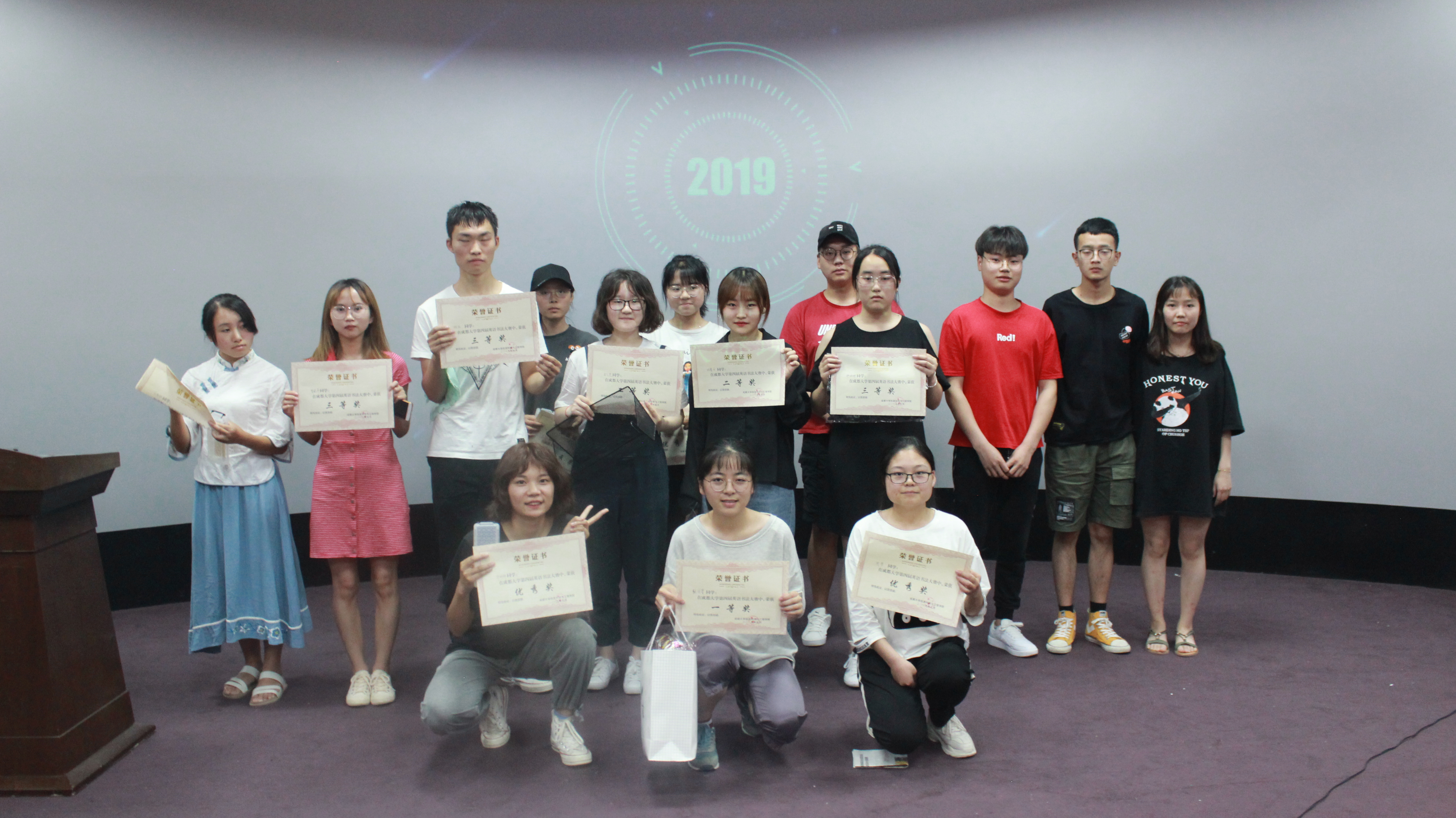 赛中,各参赛选手分享自己的书法心得以及练习技巧,在工作人员紧张的统分过程中,大赛主持人邀请观众开展了小游戏比拼,现场气氛活跃。经过精彩的演讲,激烈的角逐,有六位选手获得优秀奖,杨成、曾晓萍、钟林娜获得三等奖,张馨月、宋弋雯荣获二等奖,张国馨斩获一等奖。