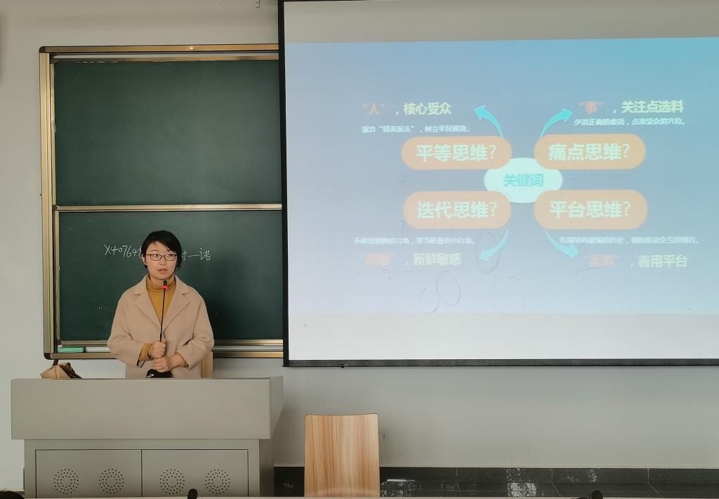 紧接着,由徐凯为同学们讲解活动文章写作以及平台运行的相关技巧,徐凯以“平等、痛点、迭代、平台”四个重点词为中心,用人民日报微信平台文章进行示例,一些新媒体小编所犯错误做反面教材,为同学们详细讲解了关于活动新闻写作的各种技巧以及注意事项。