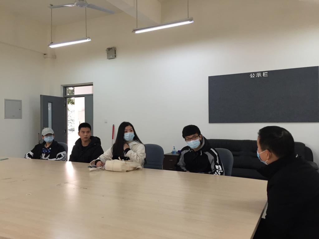 党委副书记孟源在10102办公室组织寒假留校学生召开专题会议,学工办辅导员李轶、留校学生与会。