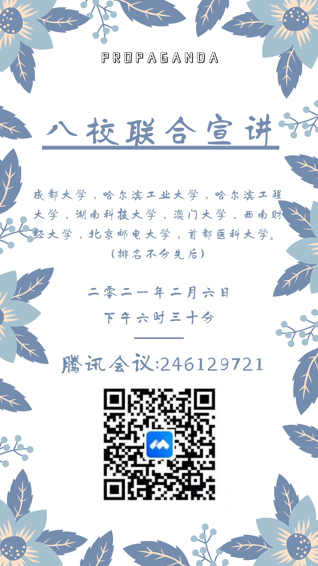 、哈尔滨工业大学、哈尔滨工程大学、湖南科技大学、澳门大学、西南财经大学、北京邮电大学、首都医科大学)进行网络宣讲,宣讲会长达4个小时,共计200余人次参与,同时张馨莹还将各学校宣传资料发布在个人空间和朋友圈,并委托原中学老师在校宣传。
