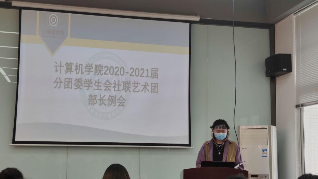 分团委学生会部长例会在教五楼路演厅正式召开。分团委书记龚硕老师、学生会主席廖文新、分团委副主席郭玮瞳、社联主席黄伯兵、艺术团秘书长刘丹、各部门部长出席此次会议。办公室部长许泽涛主持会议。