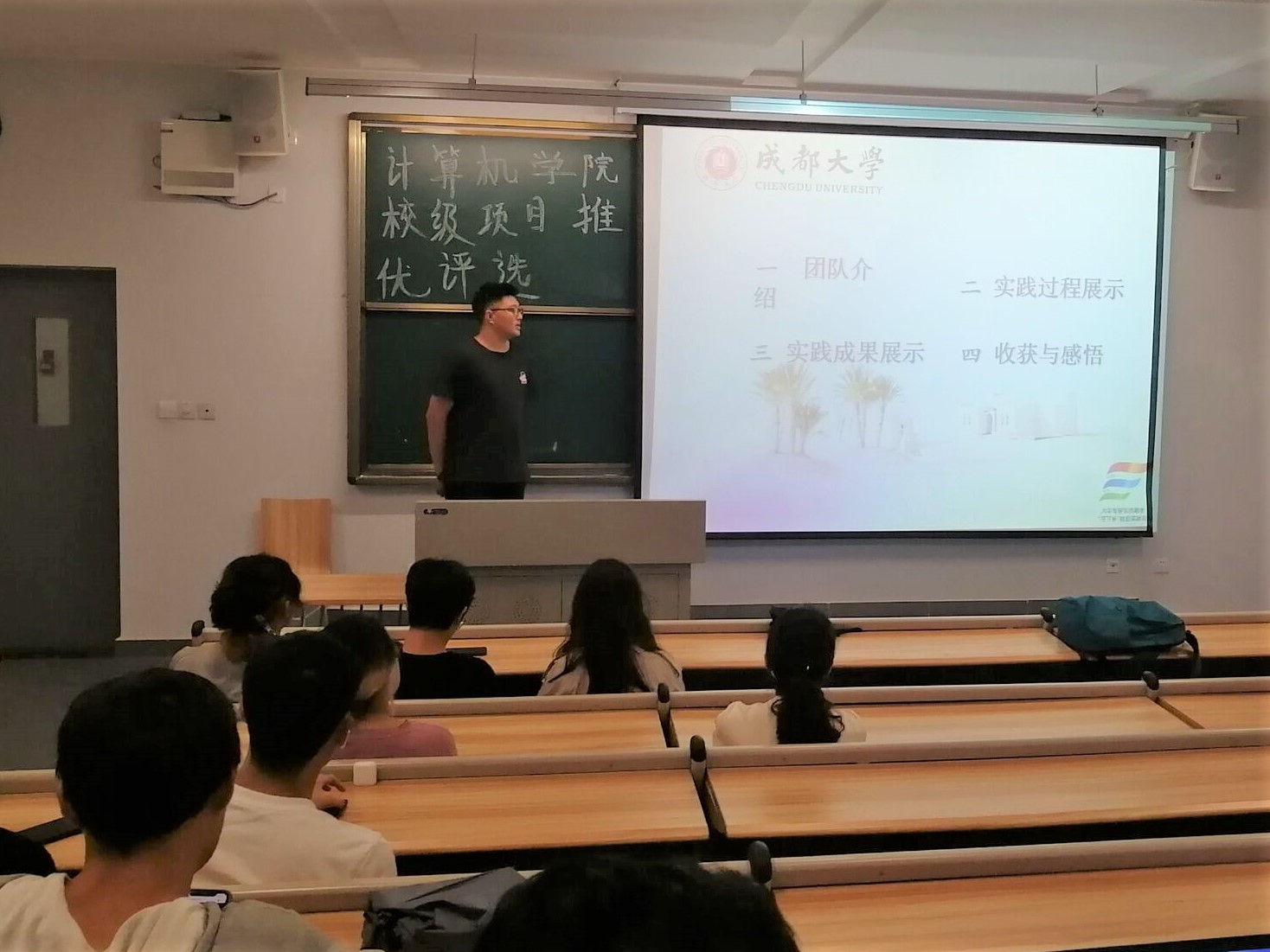 会议伊始,沈小英讲到,各位参赛队伍将从团队介绍、实践过程展示、实践成果展示和收获与感悟四个方面介绍,最终结果由评审人员现场决议产生。接着,由贾懿璠、崔奥翔、黄维亮带领的三支团队分别上台展示自己的项目。项目展示过程中,他们从容不迫、镇定自若,面对提问恺恺而谈,展现出做爱视频