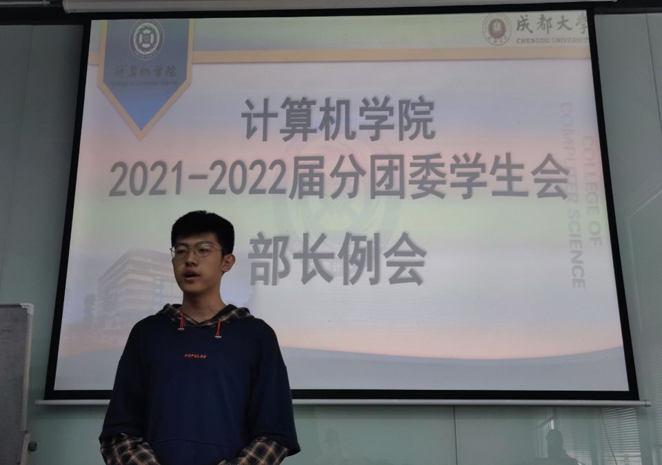 在十教512室召开2021-2022届分团委学生会部长例会。出席此次会议的人员学院分团委书记龚硕老师、学生会主席吉祥、分团委副书记许泽涛及各部门部长。办公室彭亚玲主持本次会议。