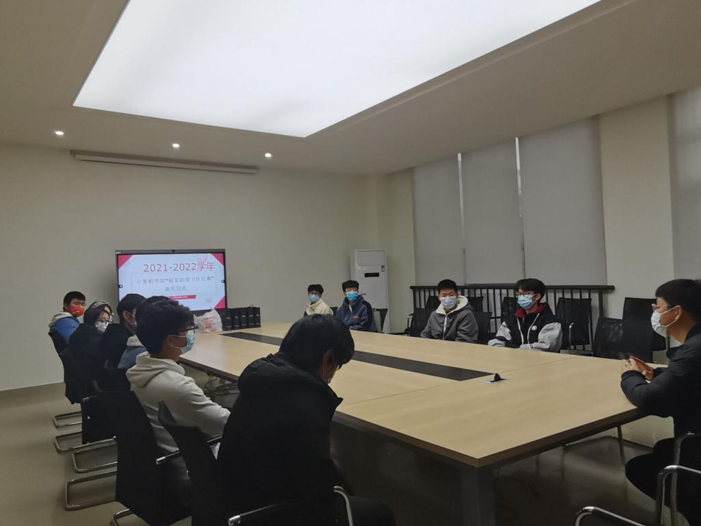 通过线上线下活动,本次比赛最终评选出11间寝室为“卫生防疫优秀寝室”。12月6日中午12:30,学院在十教106会议室召开优秀寝室颁奖仪式,学工办李轶老师为11间优秀寝室室长颁发荣誉证书和奖品,并鼓励获奖寝室一定要在日常学习生活中做好表率、当好模范,将本寝室卫生防疫的优秀做法方法在全院内进行推广,带领更多同学携手共建良好寝室环境。