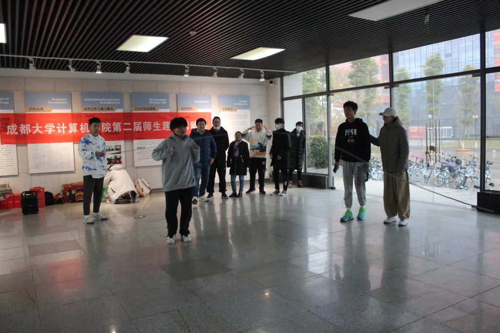 活动伊始,学院演表队同学凌茂钦演唱歌曲,活跃气氛,带动同学和老师积极参与。接着,陈学为让运动员们按赛前分好的小组为单位,由小组长带领到对应场地参加的游戏。