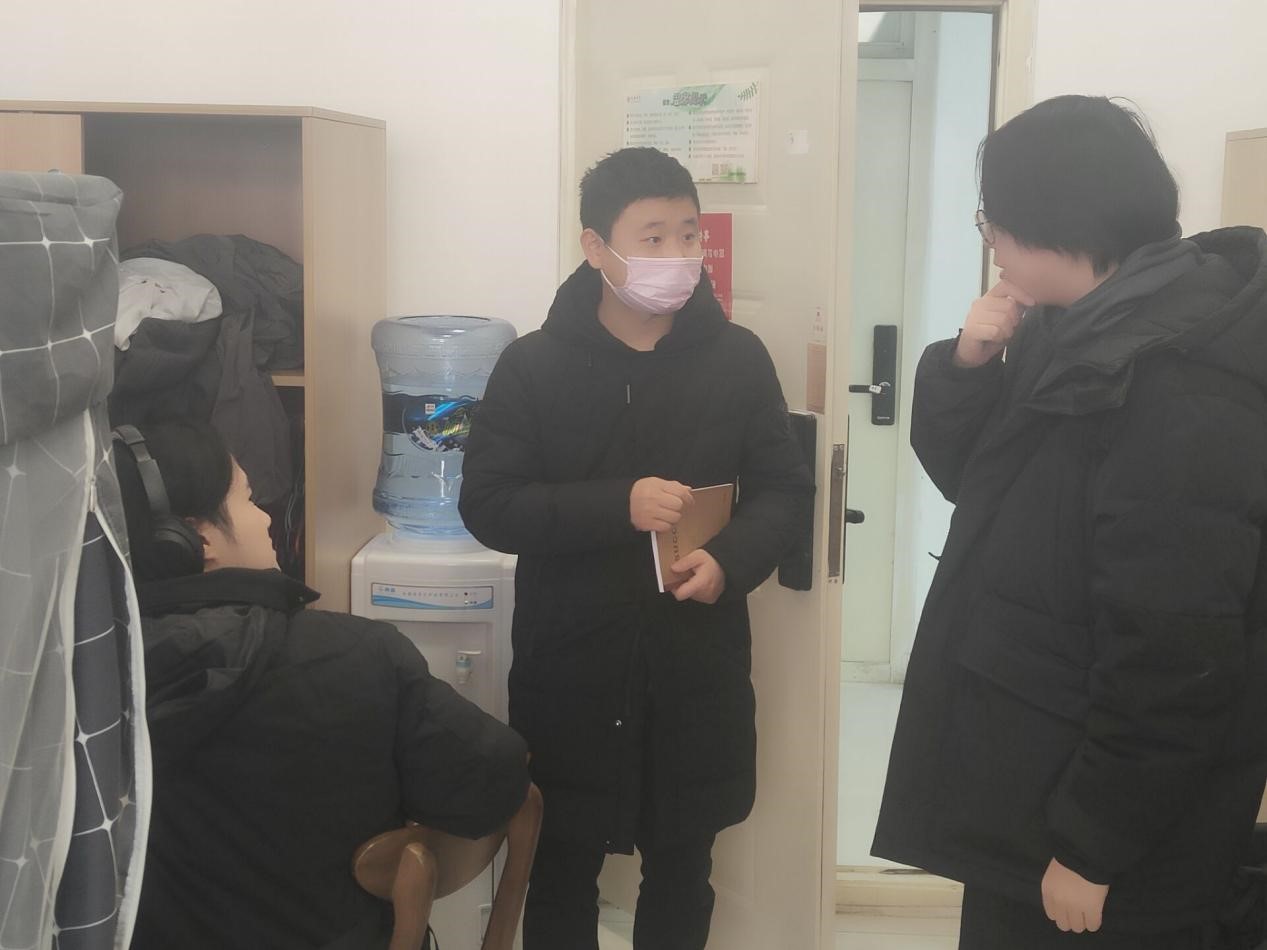在检查寝室过程中,辅导员及心生部同学对寝室学生进行了安全宣讲。一是“防火防盗防诈骗”宣传,要求同学们要遵守学校宿舍管理规定,在宿舍中勿用违规电器,进出宿舍随时关门,同时要警惕网络兼职刷单等诈骗行为,提高反诈意识。二是疫情防控宣传,要求同学们严格遵守、主动配合学校学院各项疫情防控措施,公共区域佩戴口罩,扫场所码,在寝室勤洗手、不聚集、常通风,等等,有异常情况立即向班主任和宿管报告。