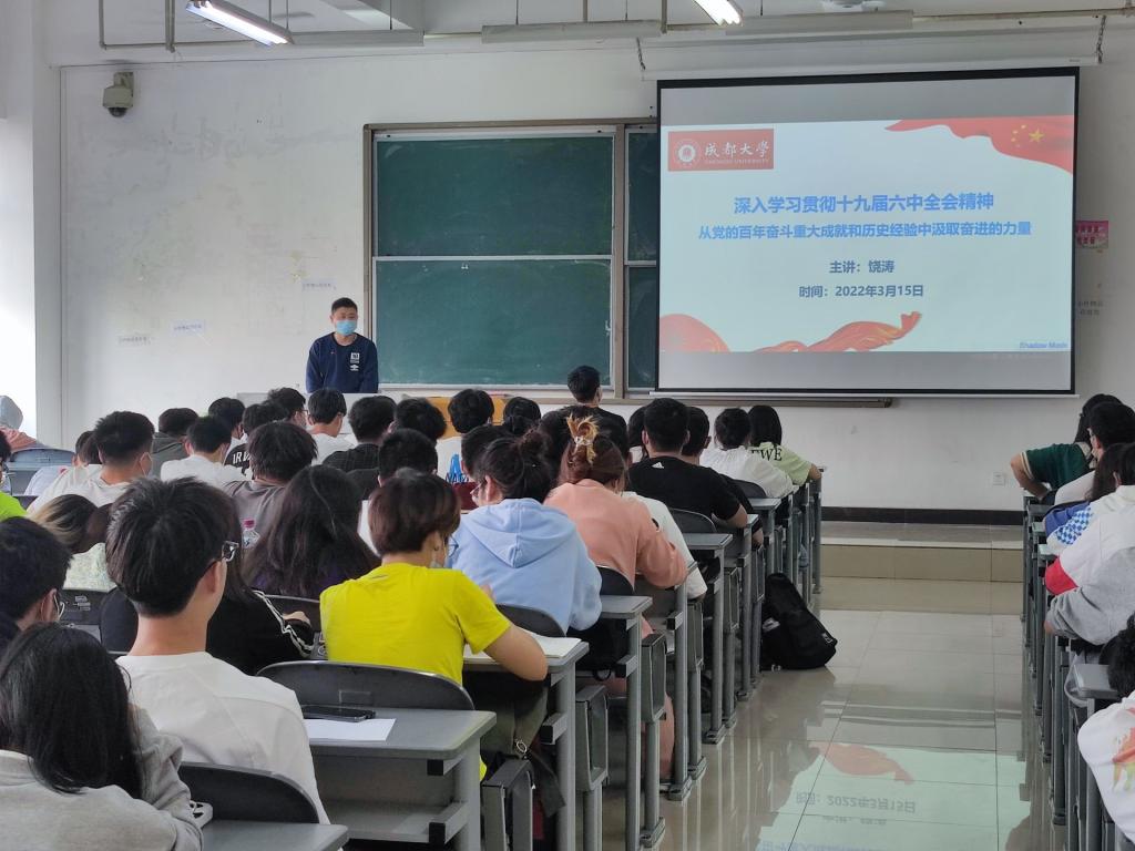 本期“青马”工程培训的讲师为饶涛。在讲堂上,饶涛就党的十九届六中全会的会议内容,主要围绕“《决议》意义”,“重要论断与提法”和“新时代,新胜利”三个方面展开授课。