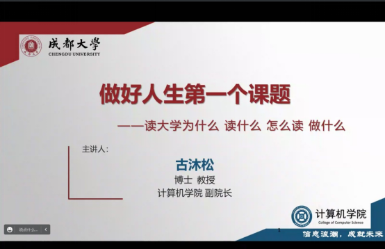 2022级入学教育新生第一课在腾讯会议举行。学院副院长古沐松教授作“做好人生第一个课题”主题讲授,来自全国各地的420名2022级新生在线聆听。会议由辅导员饶涛主持。