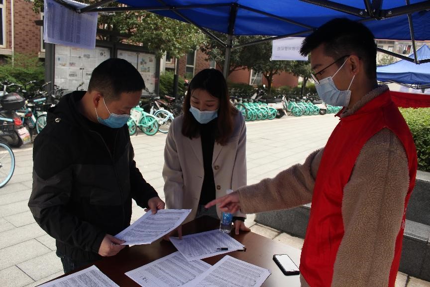 接待新生的志愿者们统一着装、佩戴工作证,积极热情地帮助新生搬运行李,耐心为他们指路解答疑问顺利完成入学报到。孟源和曾倩全程陪同志愿者一同接待新生,协助分发学校的纪念品等。