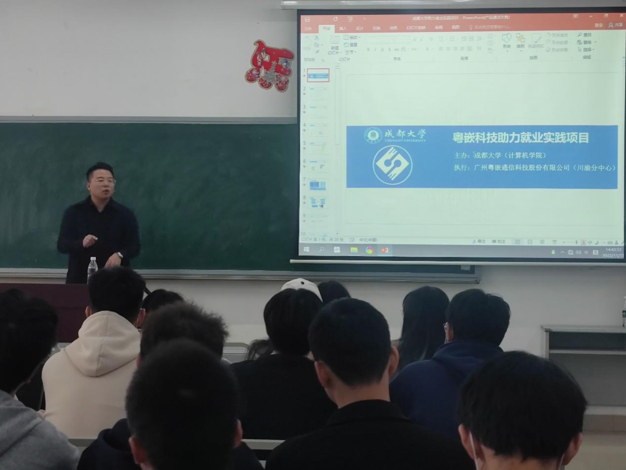 邀请粤嵌科技开展就业实践项目讲座,此次活动由广州粤嵌通信科技股份有限公司工程师夏天主讲。