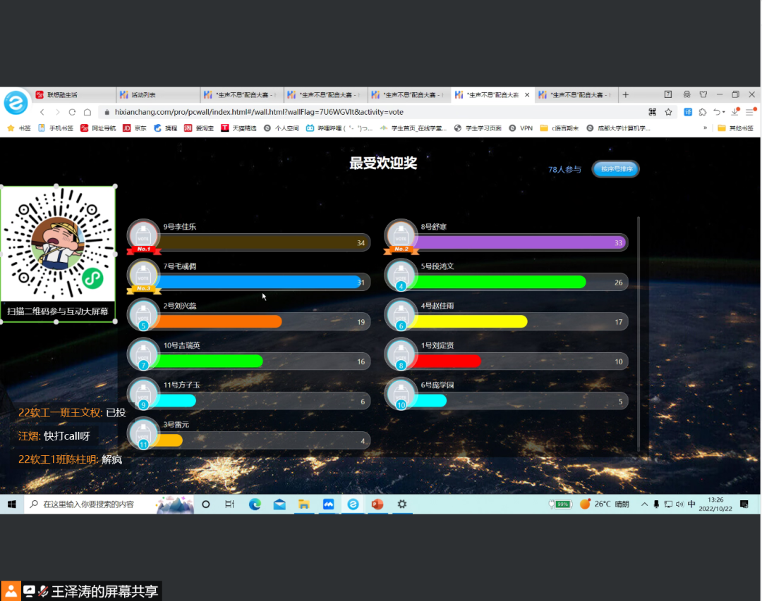 大家的表现都十分精彩,引得评论夸赞不断。在经过激烈的“神仙打架”一般的比拼后,主持人组织大家扫码进行投票,选出自己喜欢的选手,并通过投票数排行榜,选出前三作为三名获奖选手。