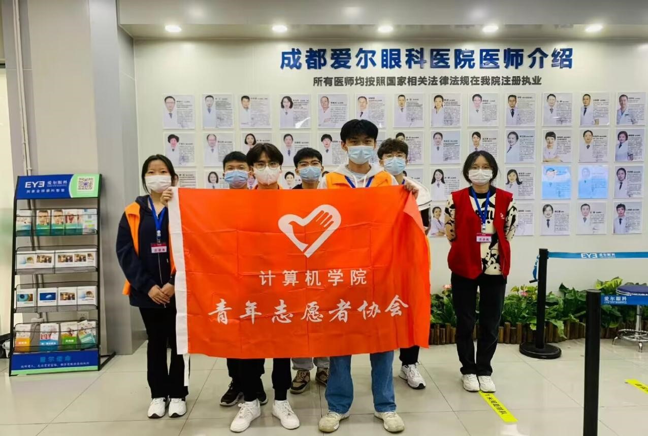 分会和电子信息与电气工程学院分会的志愿者们在成都爱尔眼科医院开展志愿者活动。