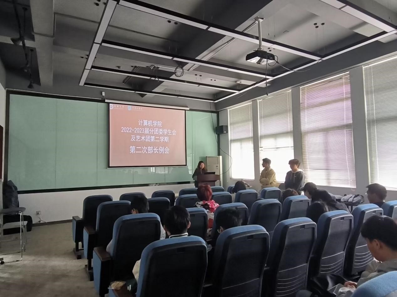 于十教10512线下开展分团委学生会及艺术团第二学期第二次部长例会。本次会议主题是各部门部长对前半学期工作的总结展望,以及对未来工作的安排。参加此次例会的人员有做爱视频