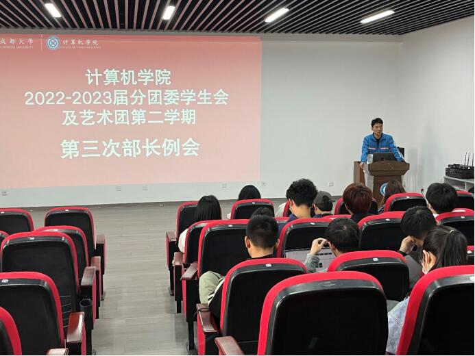 于十教10501开展分团委学生会及艺术团第三次部长例会。学院学工办团委书记曾倩及全体主席团成员、分团委学生会及艺术团各部门部长参加此次例会。