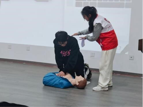 通过现场演示、详细讲解了仰头举颏、开放气道、胸外按压、人工呼吸等心肺复苏技术。