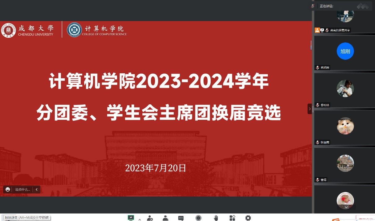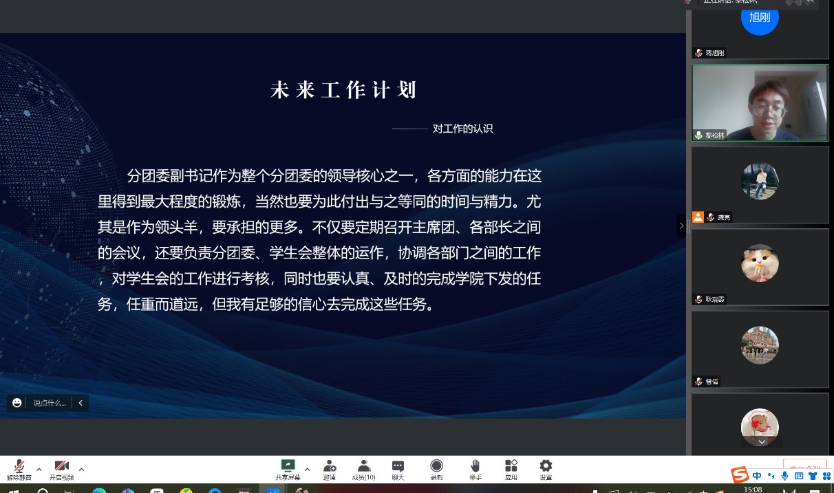 以腾讯会议的方式开展2023-2024届分团委学生会主席团换届大会。学院党委副书记孟源、辅导员龚硕、敬晶、方林红、饶涛参加会议,学院分团委书记曾倩参加并主持大会。