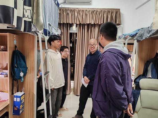 在走访过程中,老师与同学们亲切交谈,了解同学们在宿舍的学习生活状态,普及宿舍安全知识,并希望同学们积极调整自己的状态,相互之间互帮互助,早日适应大学生活,珍惜时间,不负青春,不忘初心,保持谦虚,奋发向前。