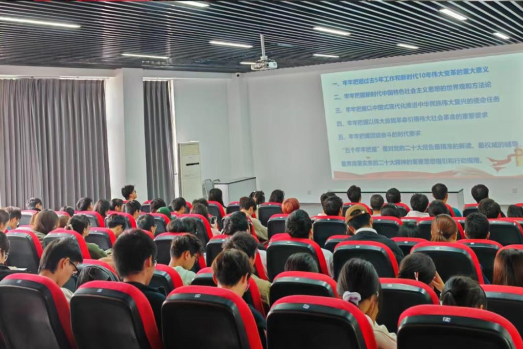 学工办喻剑老师主讲,主题为新征程新境界,学习党的二十大精神。