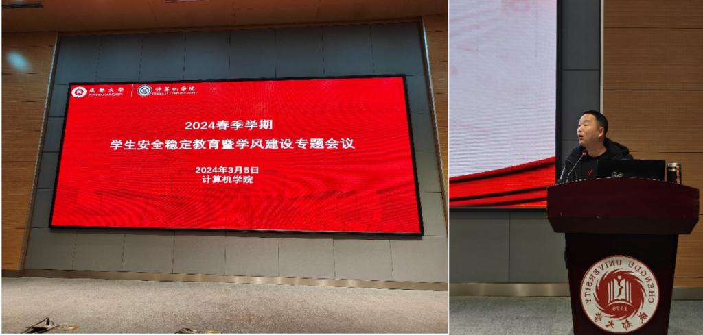 组织学生干部参加2024春季学期学生干部思想教育暨学风建设专题会议,本次会议由学学院党委副书记孟源主讲,从防骗反诈、学风建设、安全稳定三个角度展开。
