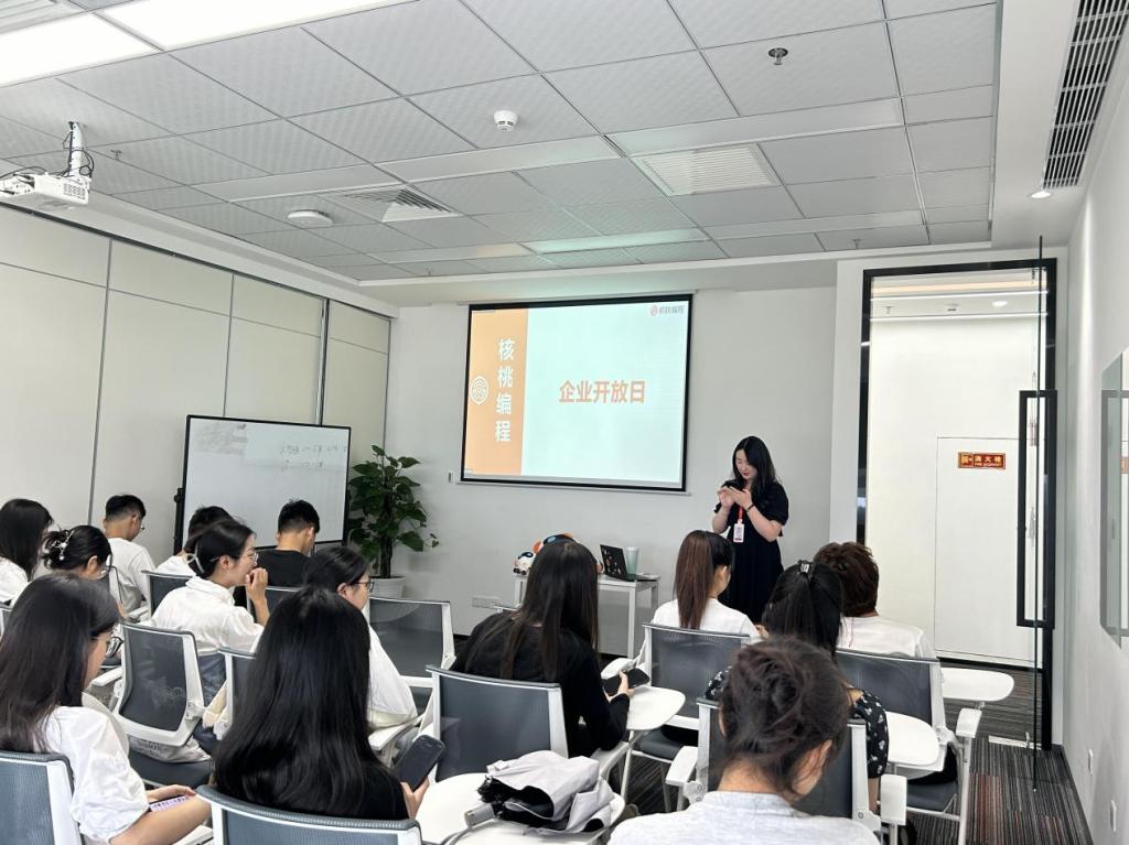 公司人员先带领同学们参观了核桃编程的教学环境,包括现代化的教室、配备先进设备的实验室以及充满活力的创意工作室。随后,他们参加了由资深编程讲师主持的企业宣讲会,内容涵盖了编程基础知识、行业趋势分析以及未来技术展望。学生们聚精会神,积极与讲师互动提问,现场气氛热烈。