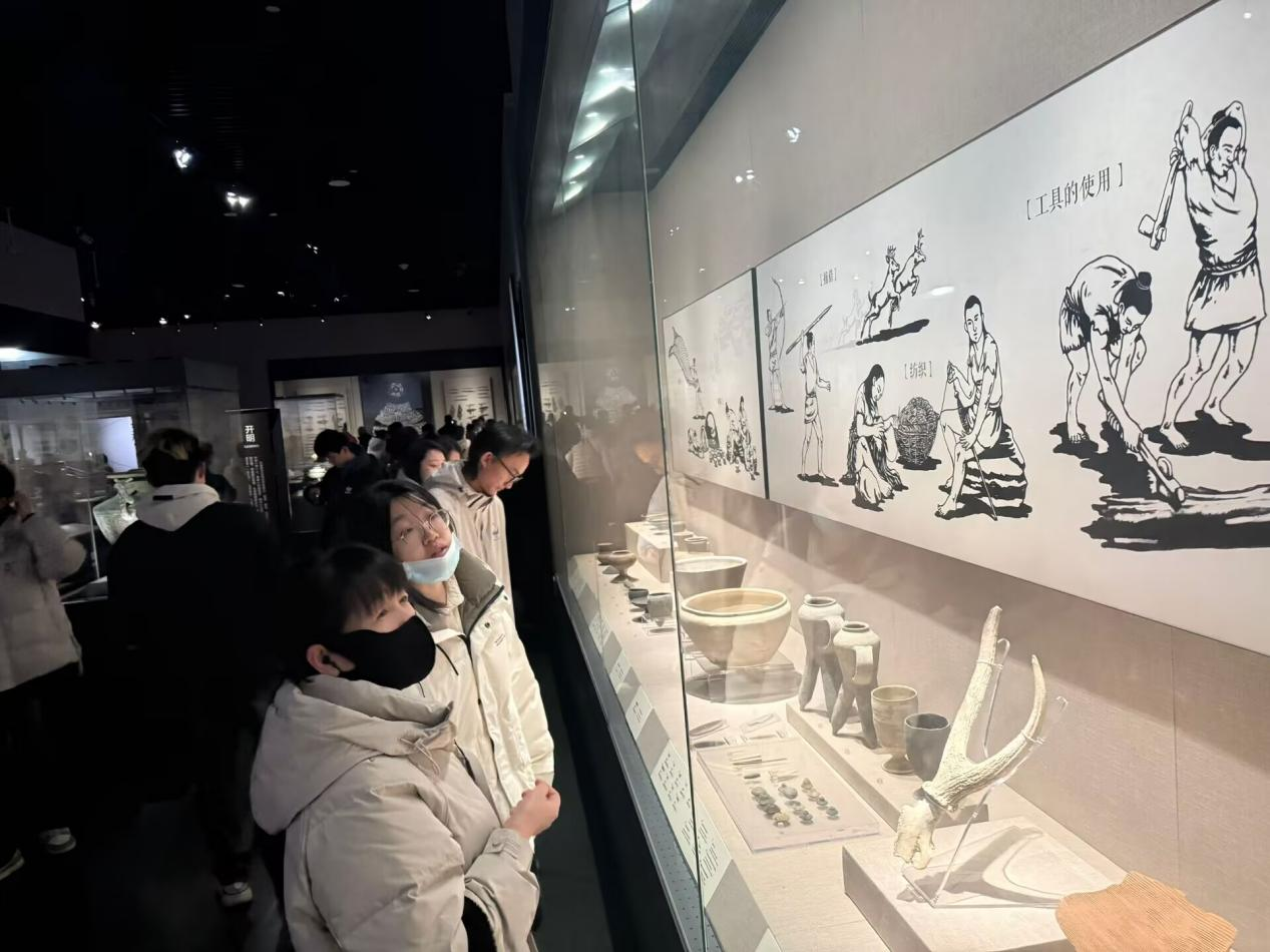 踏入这座集古代文物、民俗文化与现代艺术于一体的综合性场馆,同学们仿佛开启了一场穿越时空的对话。在古代文物展区,青铜器庄严厚重,陶俑姿态各异,书画作品墨韵飘香,每件展品都是古代辉煌文明的生动写照,让同学们惊叹不已,仿佛能透过它们触摸到历史的脉络与温度。步入民俗文化展区,各类传统民俗展品琳琅满目,全方位展示了成都独特的民俗风情,让同学们深入了解本土历史底蕴,真切体会到地域文化。
