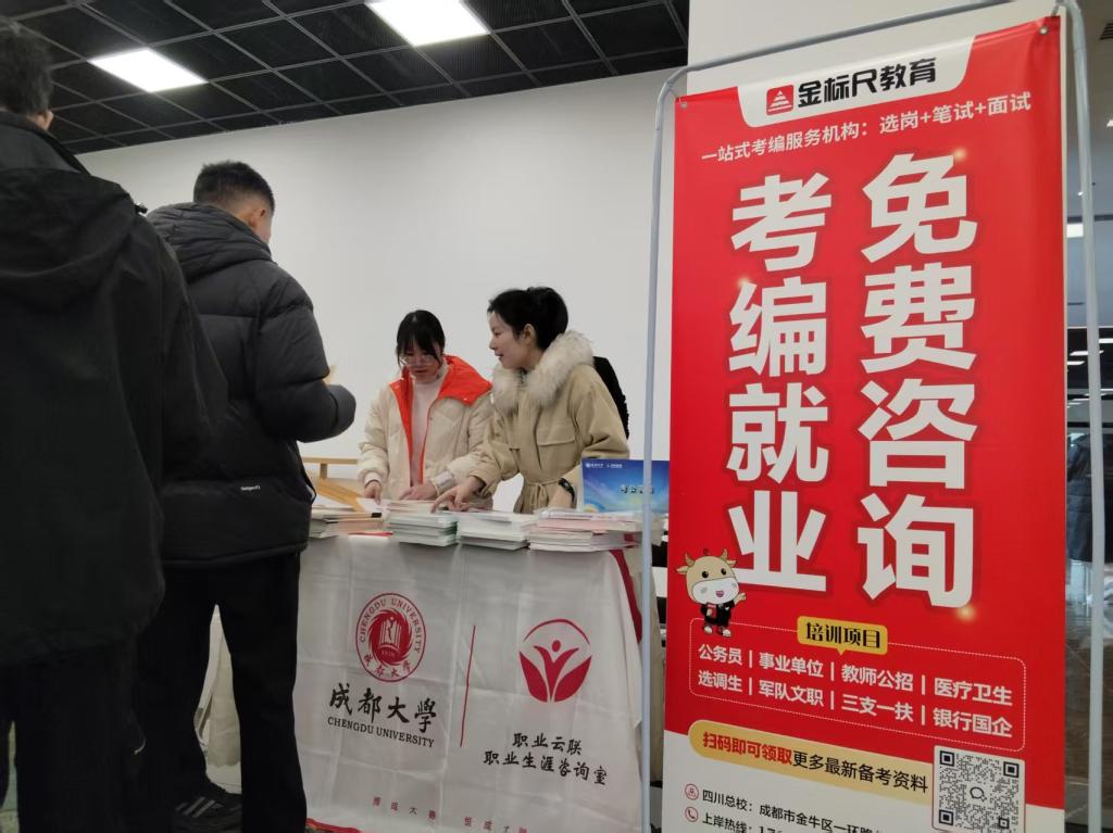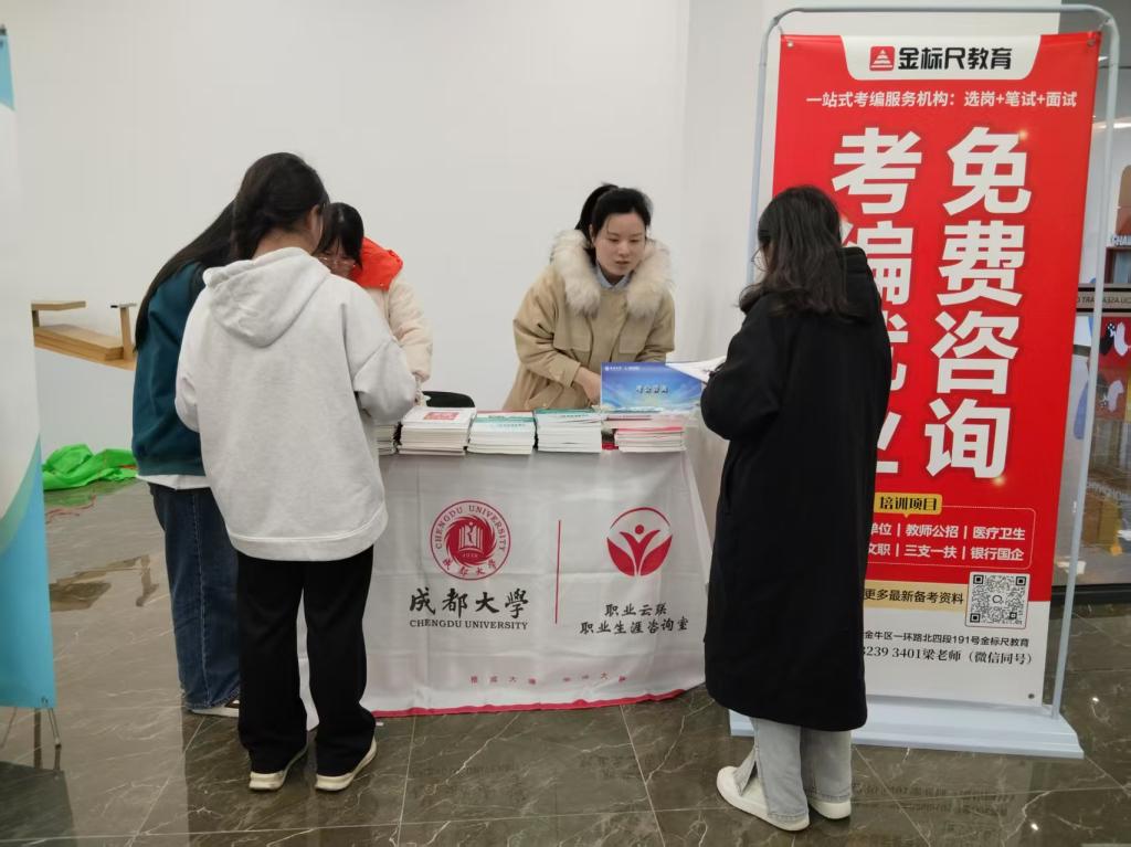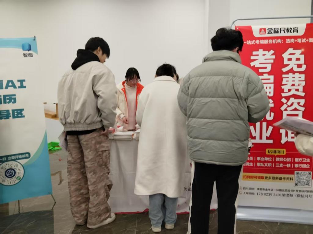 活动现场,金标尺教育作为一站式考编服务机构,为同学们提供了免费的考公咨询服务,内容涵盖选岗、笔试、面试等多个方面。工作人员耐心细致地解答同学们提出的各种问题,针对公务员、事业单位、教师公招、医疗卫生、选调生、军队文职、三支一扶、银行国企等不同考编方向,为同学们提供专业的备考建议和指导。