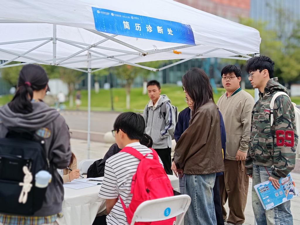 双选会现场气氛热烈,秩序井然。毕业生们手持精心准备的简历,积极与招聘代表交流,主动了解岗位信息与发展前景。为全面提升毕业生的求职竞争力,现场还特别设立了“就业指导服务区”,提供简历诊断、面试指导与公考咨询等一站式服务。据统计,服务区当天为30余位同学提供了专业的简历修改和面试技巧指导,并为40余位有考公需求的同学解答了公务员、事业单位考试的相关政策与备考疑问,获得了同学们的一致好评。