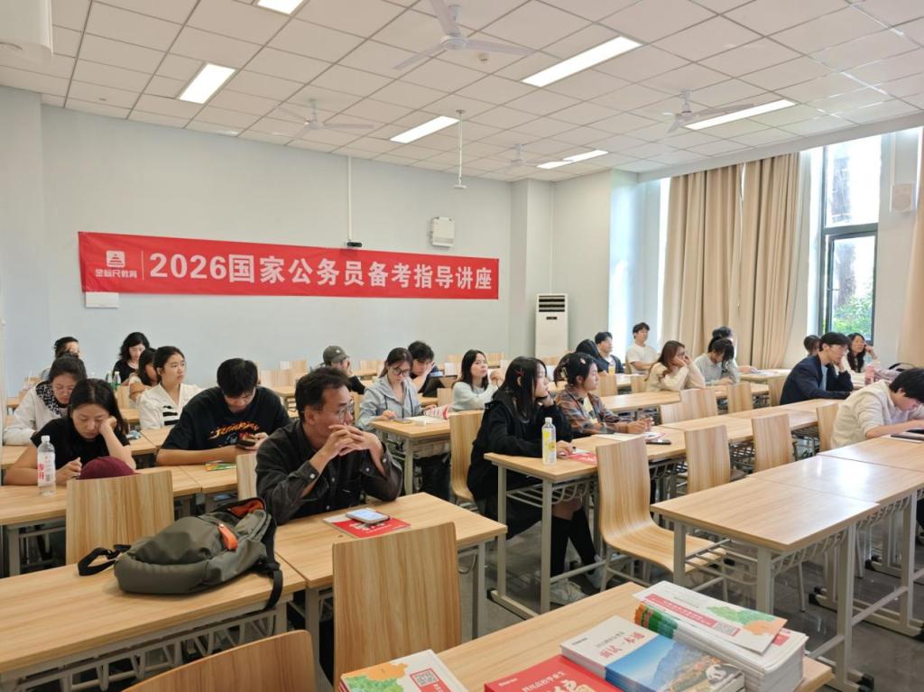 本网消息(文/罗宇辰 图/方红林) 为帮助在校学生更好地备战2026年国家公务员考试,职业云联与金标尺教育联合举办的"2026年国家公务员备考指导讲座"于2025年10月14日下午在12教128教室成功举行。本次讲座特邀公职考试培训专家一诺老师担任主讲,为同学们提供专业的备考指导。