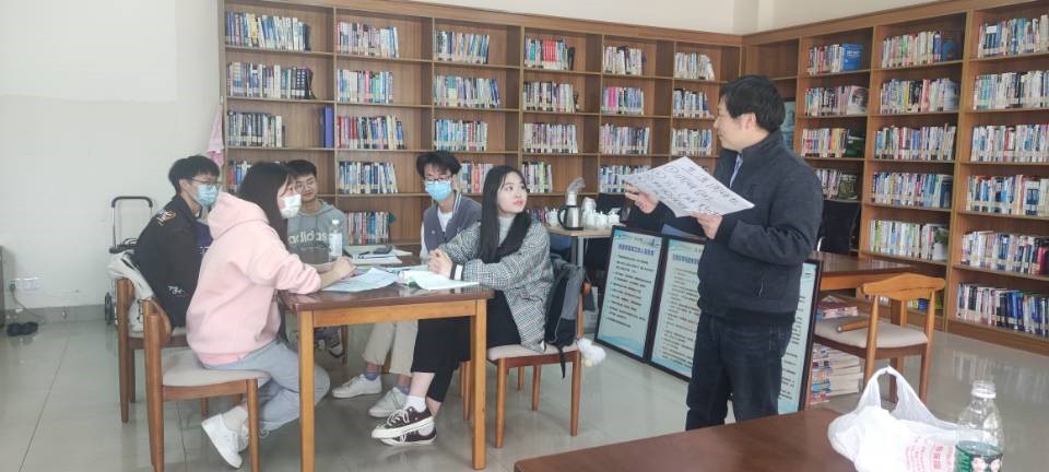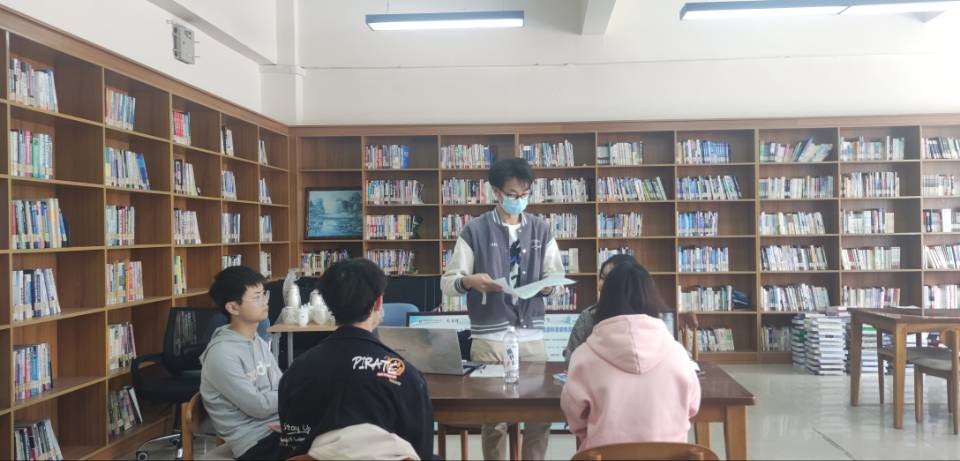 在校园调研中,各组按照需要施行了分工合作和个别活动。在调研的后半段时间中,同学们陆陆续续到图书资料室进行小组讨论,并把调研的目的、对象概况、方法、数据、结果、结论、存在的主要问题以及发展思路和建议用彩笔在白纸上面制作展示,并派出代表做最后的汇报,限时两分钟。