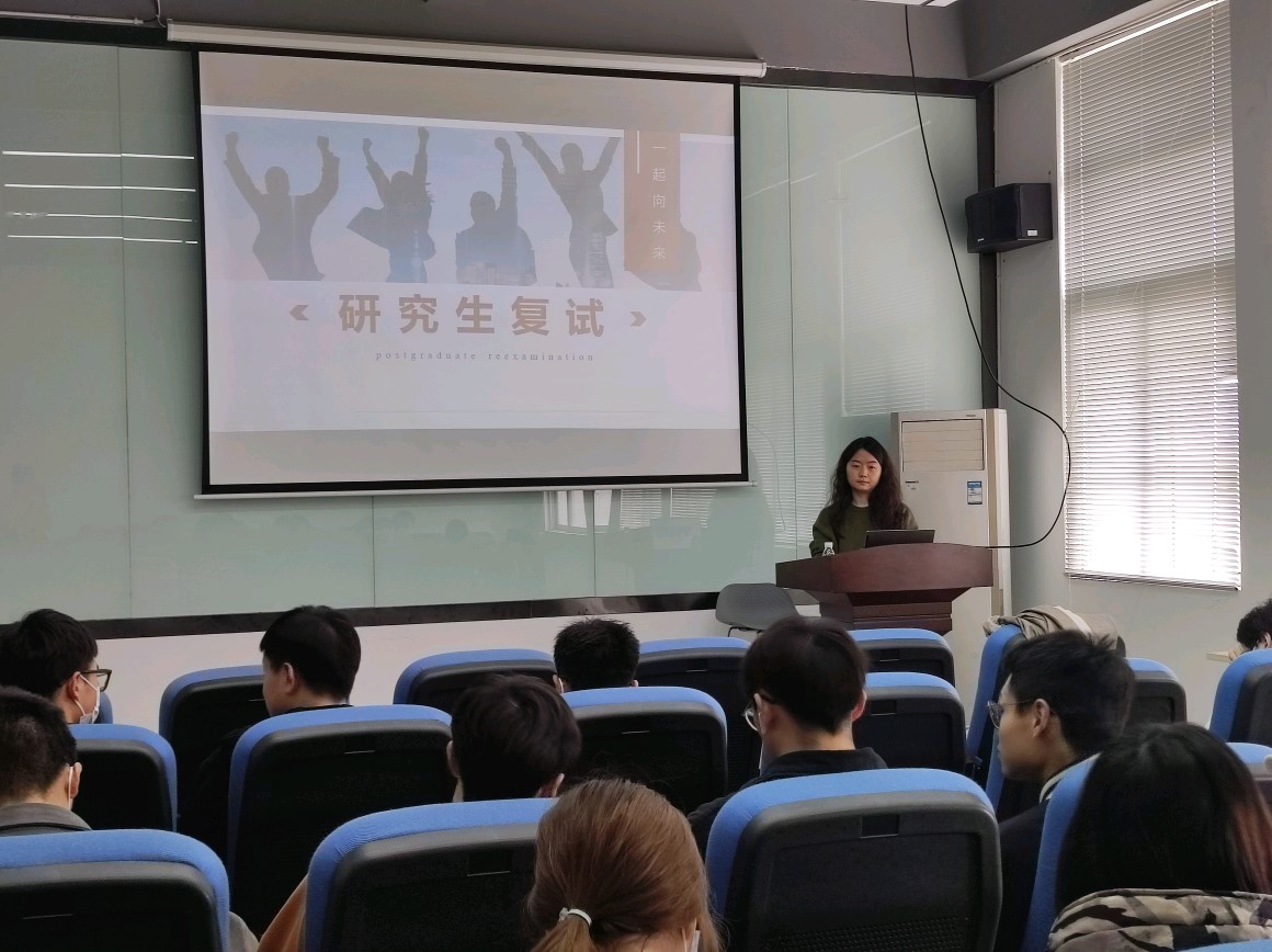 活动开始,符颖先做专业复试指导。首先介绍专硕和学硕的区别,随后根据考研流程和学生情况进行分析,包括与导师交流的邮件内容应包含自我介绍与突出优势,表现出自己已经制定详细的学习计划等,然后讲解复试时笔试面试注意事项和调剂的相关事宜。最后就学生提出的一系列问题做出详细的回答。并且鼓励同学要对自己有全方位清晰的认识,坚定自己的目标,并提前为复试做好充分的准备。